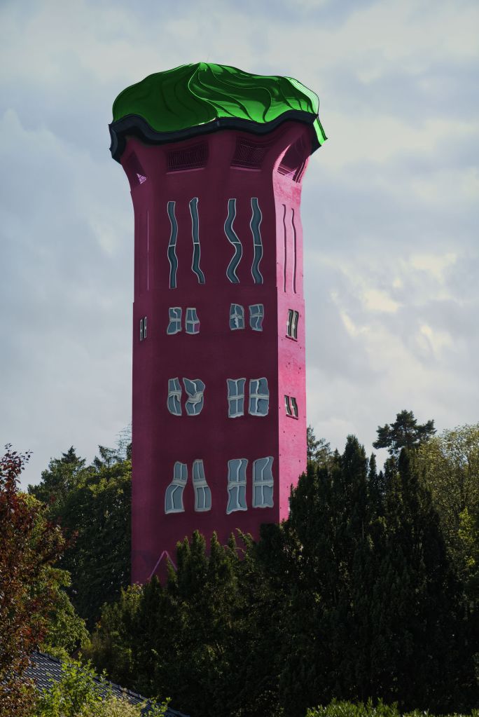 Was Uelzen kann, kann Varel schon lange: Die Neugestaltung des Wasserturms vereint Elemente des Hundertwasserbahnhofs mit dem Schwung der Waldorf-Ästhetik, einem Konglomerat aus Zitat und Grundierung, bei dem einem schwindelig werden kann, und das ist nicht nur der Höhe des Bauwerkes geschuldet.