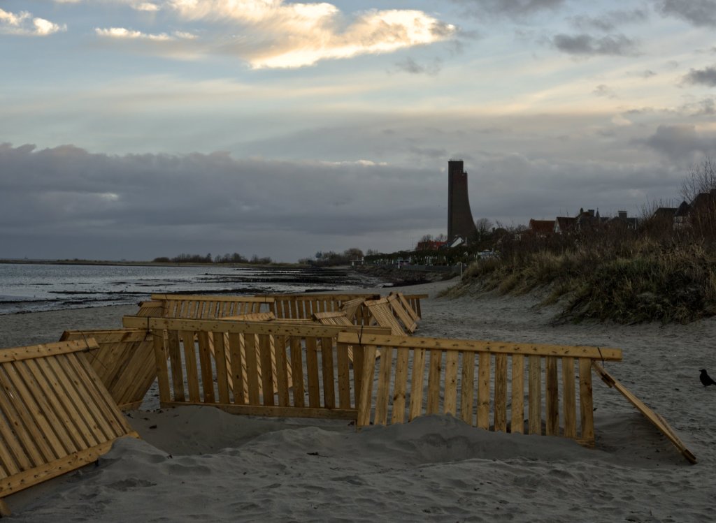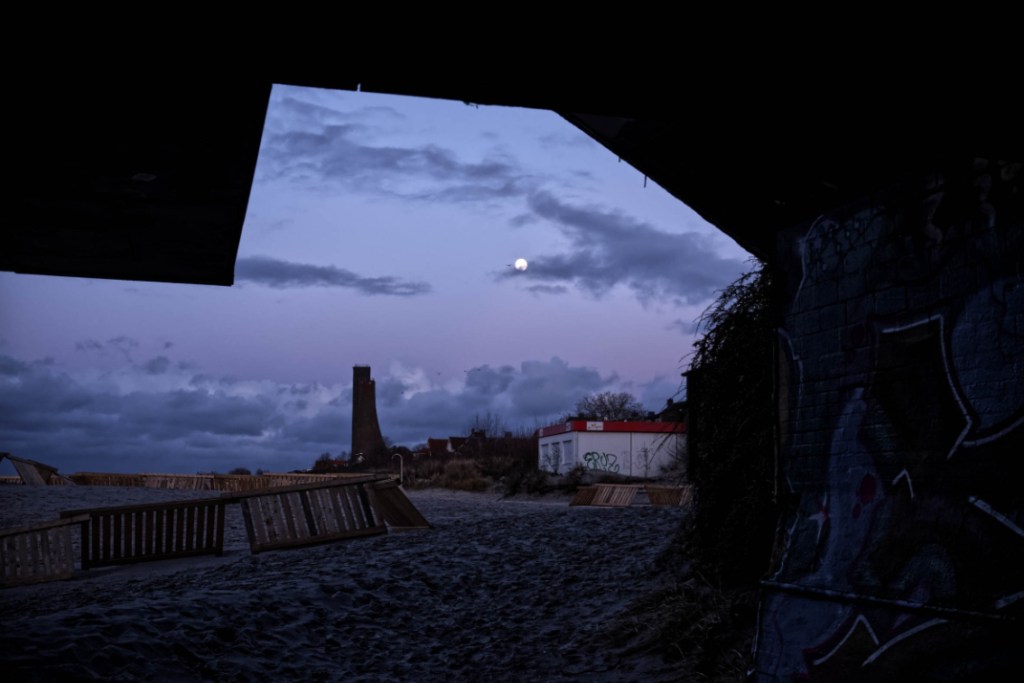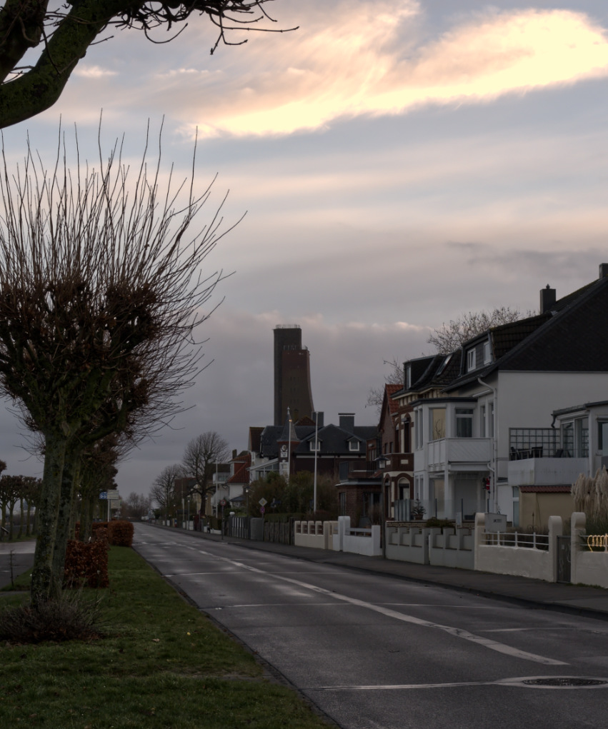 Dabei tragen die Laboeer und Laboeinnen, oder sollte man genderkorrekt kürzen: die Laboeenden – die Laboeenden also schultern ein Schicksal, das sie mit Paris eint: Dort ragt der Eiffelturm über alles, was nicht Beine zum Davonlaufen hat, hier in Laboe ist es das Ehrenmal. Es ragt und ragt, von wo man auch umherpliert, und zeigt dem kulturfremdelnden Touri den Ehrenfinger, da kann er sich drehen und winden und den Kopf unter den Arm stecken: mal vom Strand aus, mal in der Ferne, mal am Ende dieser Straße oder jener oder überhaupt jeder Straße.