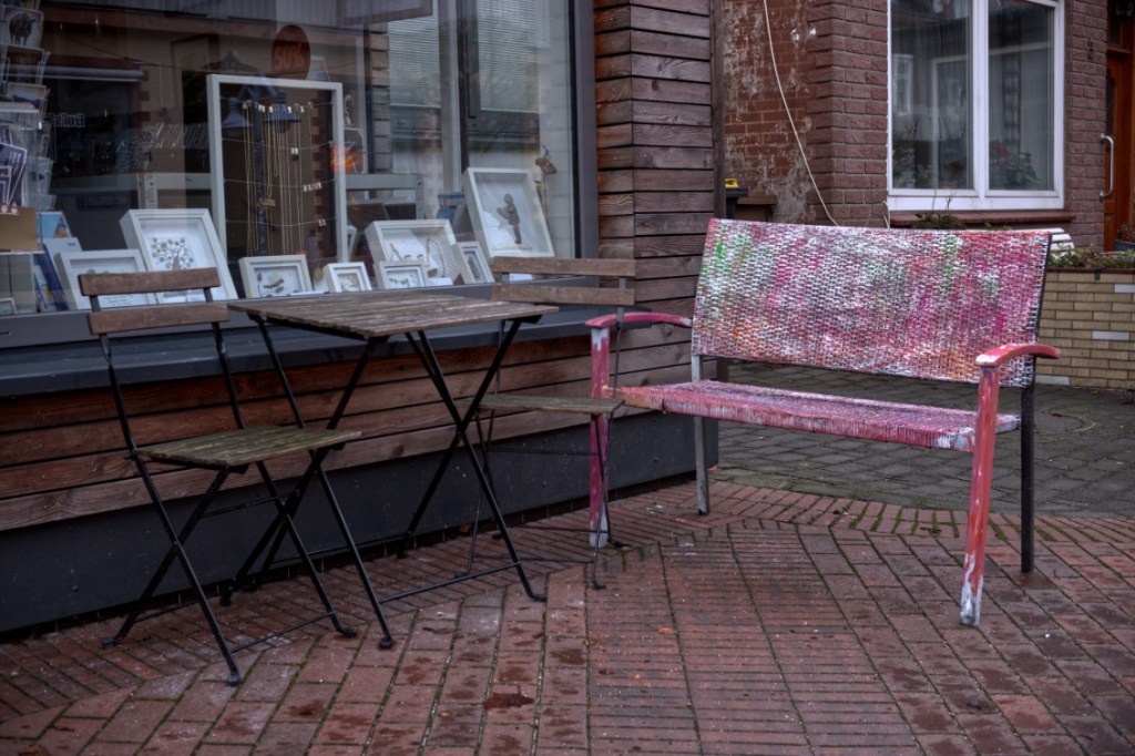 Tatsächlich erweisen sich die Laboeenden als gastfreundliche Ortseinheimische, die keine Mühe scheuen, den Touris Plätze zum Ausruhen und Verschnaufen anzubieten, zu Einkehr und Traumabewältigung (Ehrenmal). Hie ein Sessel, dort eine farbenfrohe Bank vor Schaufensteridyll oder auch ein gemütlich gedeckter Gartenstuhl.
