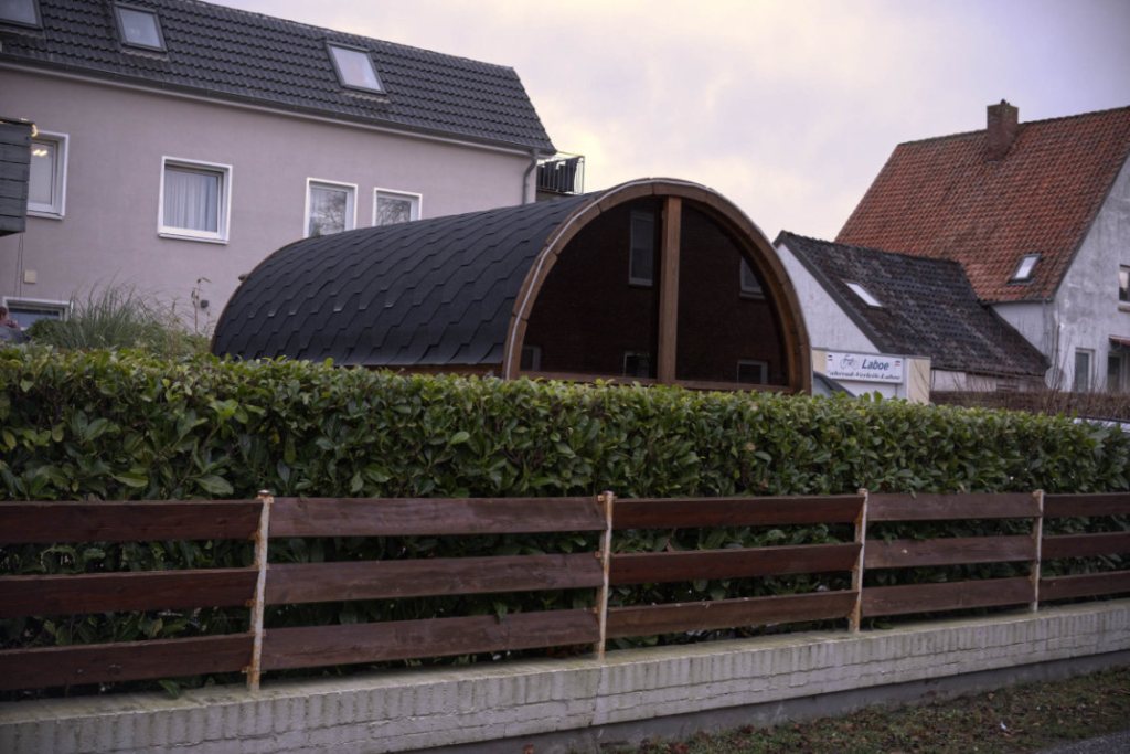 Wem es bei diesem Anblick fröstelt, dem halten die Laboeenden eine Vorrichtung vor, die so zahlreich nur in Laboe zu finden ist, die Saunatonne! Vermutlich hat ein Wandersaunatonnenverkäufer hier das Geschäft seines Leben gemacht, aber gut, zum Wohle der Gäste ist dem Ureinheimischen nix zu schade.